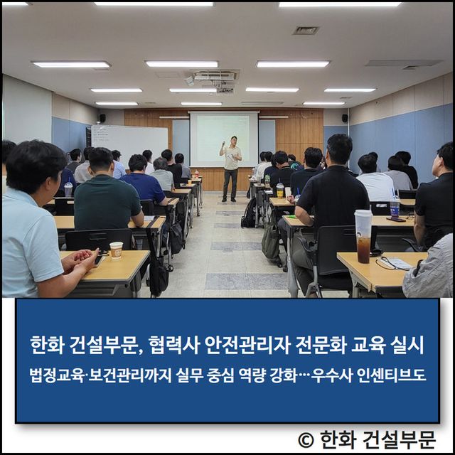 한화 건설부문은 이번 교육 외에도 고위험 공종 협력사 대표이사 간담회, 전체 관리자 대상 안전교육 등을 추진하며, 안전문화를 전사적으로 확대하고 있다.