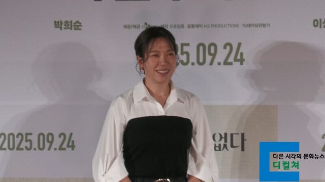 배우 염헤란이 22일 열린 영화 <어쩔 수가 없다> 기자간담회에 참석해 검은색 옷을 입은 이병헌, 손예진, 이성민과 흰옷을 입은 박희순과 달리 검은색과 흰색이 섞인 옷으로 눈길을 끌었다.