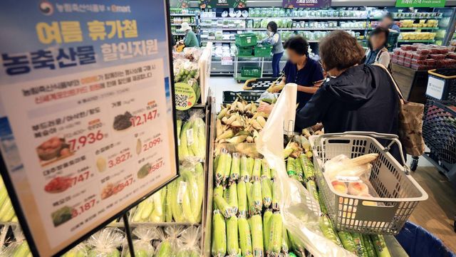 서울 도심의 한 마트에서 시민들이 오이를 살펴보고 있다 / 뉴스1