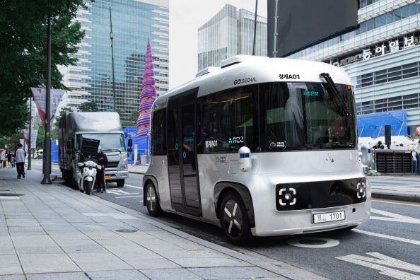 서울시는 23일 오후 1시부터 운전석 없는 자율주행셔틀 ‘청계A01’ 노선의 운행이 서울 종로구 청계천에서 시작된다고 밝혔다. 자율주행셔틀은 시험운전자가 운전대에 앉아 운행하는 기존의 자율주행버스와 달리 운전석과 운전대가 없다. 자율주행셔틀이 서울 시내에서 운행되는 것은 이번이 처음이다.