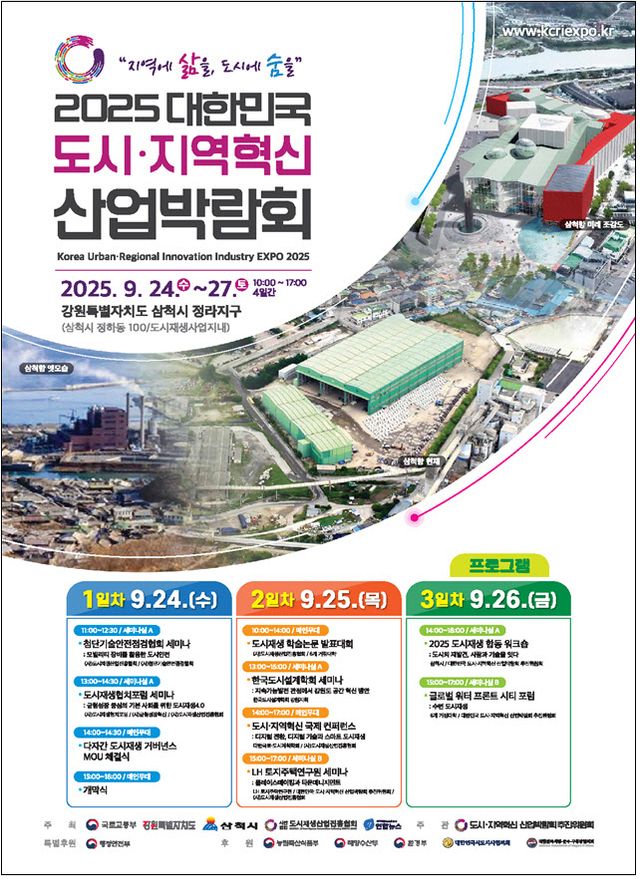 개막식은 오는 24일 오후 3시 메인무대에서 열릴 예정이다. 김윤덕 국토부 장관이 영상 개회사를 전하며, 김경수 지방시대위원회 위원장과 김광래 강원도 경제부지사가 각각 영상 축사와 환영사를 이어간다. 이후 차기 개최지 발표와 함께 도시지역혁신대상 등 우수 성과 사례에 대해 국토부와 행정안전부가 시상한다.