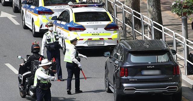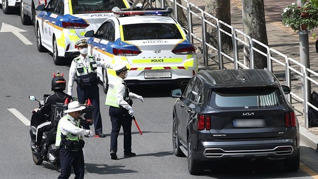 경찰들이 끼어들기 단속을 하고 있다. 끼어들기 단속에 걸리면 승용차 기준 범칙금 3만 원과 벌점 10점이 부과된다. 기사의 이해를 돕기 위한 사진 / 뉴스1