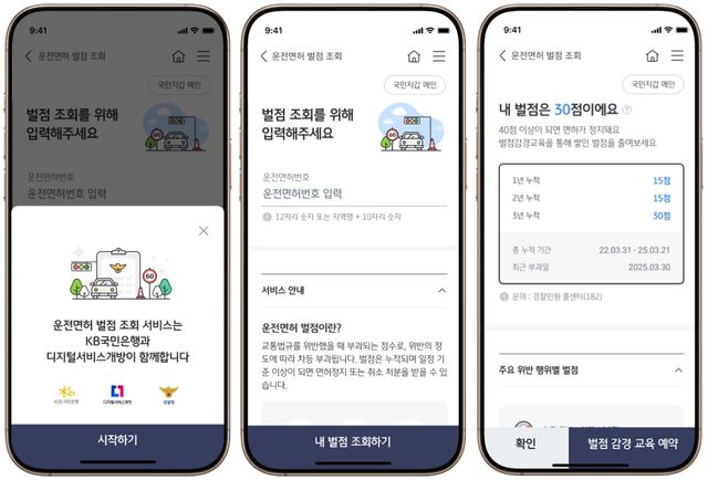 KB스타뱅킹 운전면허 벌점 조회 / 행정안전부 제공