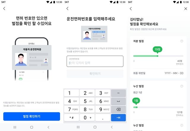 티맵 운전면허 벌점 조회 / 행정안전부 제공