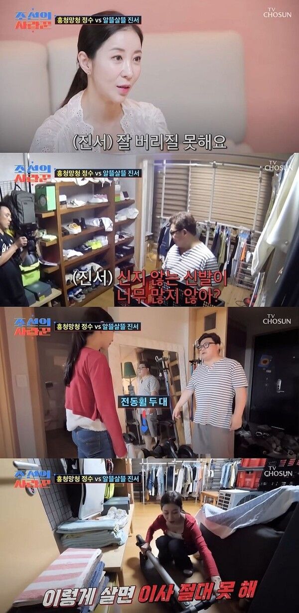 그는 윤정수 옷방에 들어가 "너무 지저분하다. 신발이 너무 많지 않냐"고 했다.