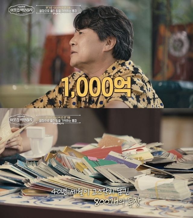 뿐만 아니라 박현순은 '이웃집 백만장자'를 통해 지난 40년간 모아온 800개의 통장을 방송 최초로 공개한다. 여행 가방 가득 쏟아져 나온 통장 더미에 서장훈과 장예원은 깜짝 놀라 입을 다물지 못한다.