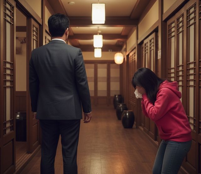 여성은 즉각 반항했지만, 남성은 아무 일 없었다는 듯 룸으로 들어갔다.