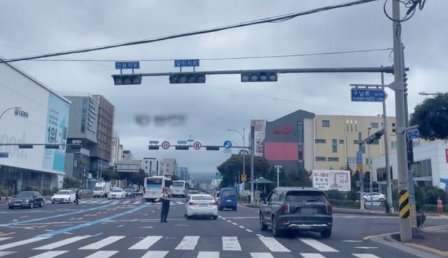 23일 오전 11시 30분쯤 이도2동의 한 사거리 신호등에 전력이 끊긴 모습.