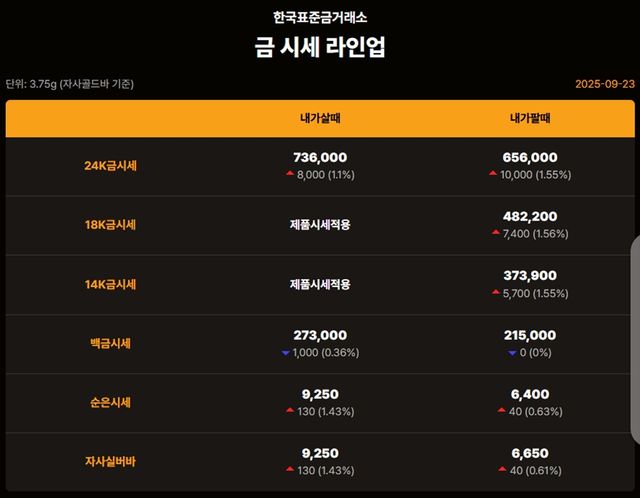 순금 : 매입가 73만 6000원 / 매도가 65만 6000원