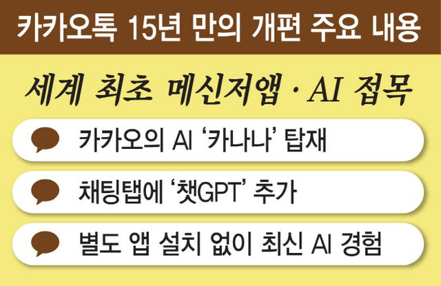 카카오는 23일 경기 용인 카카오AI캠퍼스에서 열린 연례 개발자 행사 ‘이프카카오 2025’에서 카톡 내 대규모 개편을 발표했다. 이번 개편의 핵심은 챗GPT 최신 모델(GPT-5)을 별도 앱 설치 없이 채팅 탭에서 곧바로 실행할 수 있도록 한 것이다. 이는 세계 최초 사례다.