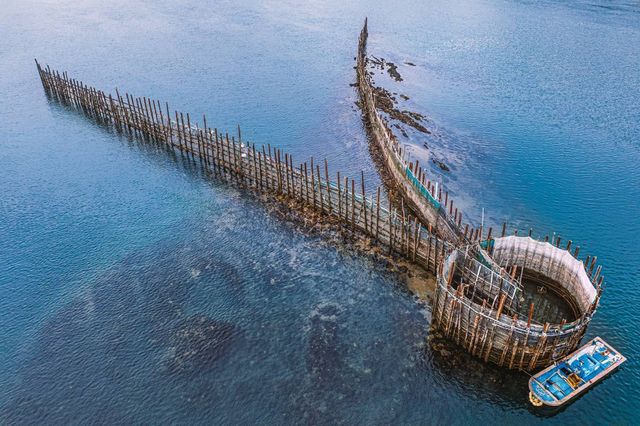 해양수산부는 '남해 지족해협 죽방렴어업'이 7월 9일 세계식량농업기구에서 지정하는 세계중요농업유산'으로 신규 등재되었다고 밝혔다. 사진은 설치된 죽방렴 형태 모습 / 해양수산부 제공, 뉴스1