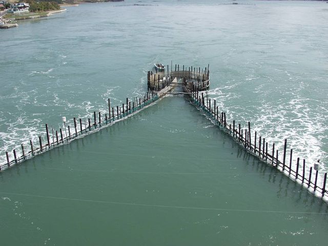 해양수산부는 '남해 지족해협 죽방렴어업'이 지난 7월 9일 세계식량농업기구에서 지정하는 세계중요농업유산'으로 신규 등재되었다고 밝혔다. 사진은 설치된 죽방렴 형태 모습 / 해양수산부 제공. 뉴스1