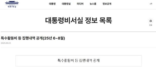 대통령실은 “특수활동비는 기밀성이 본질인 만큼, 대외 공개에 한계점이 존재하지만, 그간의 법원 판결을 존중하고, 국민의 귀중한 세금을 올바르게 집행하고 있다는 점을 밝히기 위해 집행정보 공개를 결정하게 됐다”고 밝혔다.