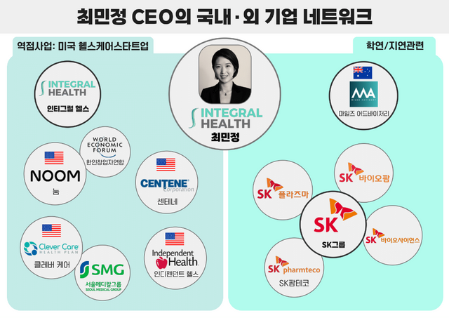 최 씨는 지난 2023년 8월 미국 캘리포니아주 샌프란시스코에서 '인티그럴 헬스'(Integral Health)라는 회사를 설립했다. 해당 기업은 인공지능(AI) 기반 헬스케어 스타트업으로 다른 헬스케어사 또는 보험사들과 파트너십을 맺고 심리 건강을 관리하는 프로그램을 제공하는 사업을 주력으로 하고 있다. 미국 헬스케어 업계 등에 따르면 '인티그럴 헬스'는 미국 내 300명 이상의 정신과 의사들과 약 31곳의 외래 진료소를 통해 심리 건강 프로그램을 제공하고 있으며 최근 현지 대형 의료기관인 가톨릭 메디컬 파트너스와도 협력해 공격적인 사업 확장에 나서고 있다.