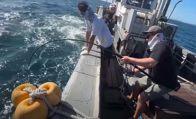 이것이 끝이 아니었다. 이들이 낚시한 포인트의 이름은 '중뢰'. 상어가 많다고 해서 붙여진 이름이라고 한다. 실제로 낚시 과정 전반에 걸쳐 상어들이 계속 나타나 낚은 물고기를 빼앗아 가는 일이 반복됐다. “상어 꼬리! 상어 꼬리!”라며 낚싯줄에 걸린 상어의 움직임을 포착한 이들은 “2m50cm는 넘는다”고 추정하며 흥분을 감추지 못한다. 한 낚시꾼은 “상어가 이렇게 힘 센 줄 몰랐다”며 놀라움을 드러냈다.