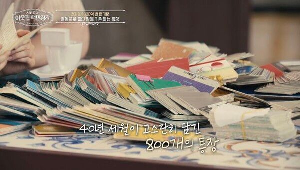 뿐만 아니라 박현순은 '이웃집 백만장자'를 통해 지난 40년간 모아온 800개의 통장을 방송 최초로 공개한다. 여행 가방 가득 쏟아져 나온 통장 더미에 서장훈과 장예원은 깜짝 놀라 입을 다물지 못한다.
