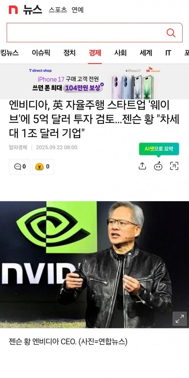 젠슨황이 선정한 차세대 시총 1조달러기업