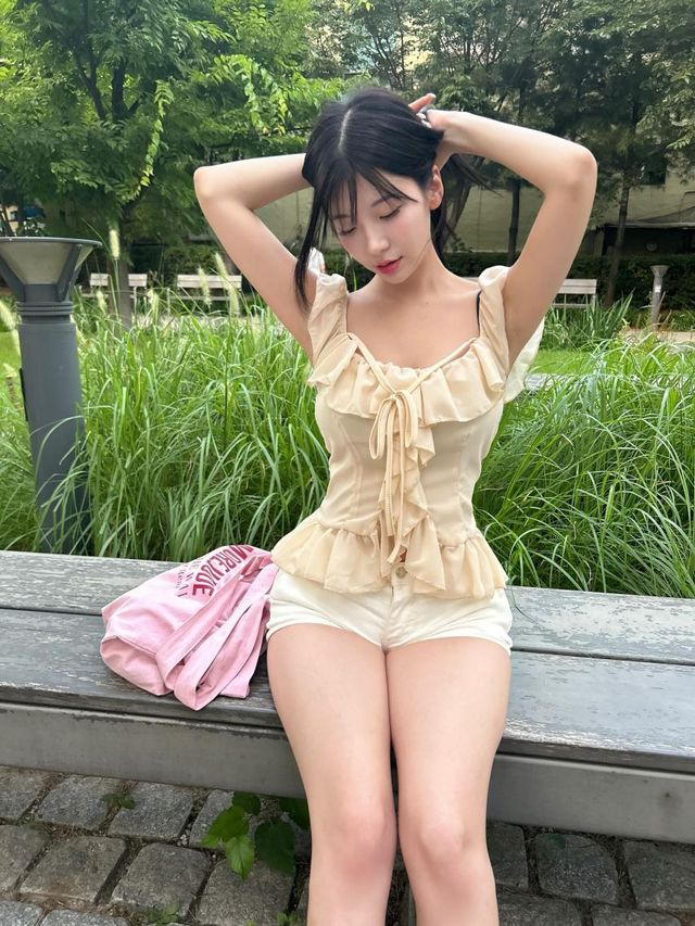 시크한 오프숄더와 클래식 스트라이프의 만남, 프로미스나인 송하영의 팬 사인회 룩