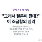 인지 종결 욕구 (Need for Cognitive Closure) 어떤 문제에 대해 “그래서 결론이 뭔데?”라고 재촉하거나, 불확실한 상황을 견디지 못하고 성급하게 답을 내려야만 직성이 풀리는 사람들이 있습니다. 이러한 성향은 단순히 성격이 급해서가… 자세히 보기: 인지 종결 욕구, 애매한 것을 참지 못하고 빨리 결론 내리려는 성향