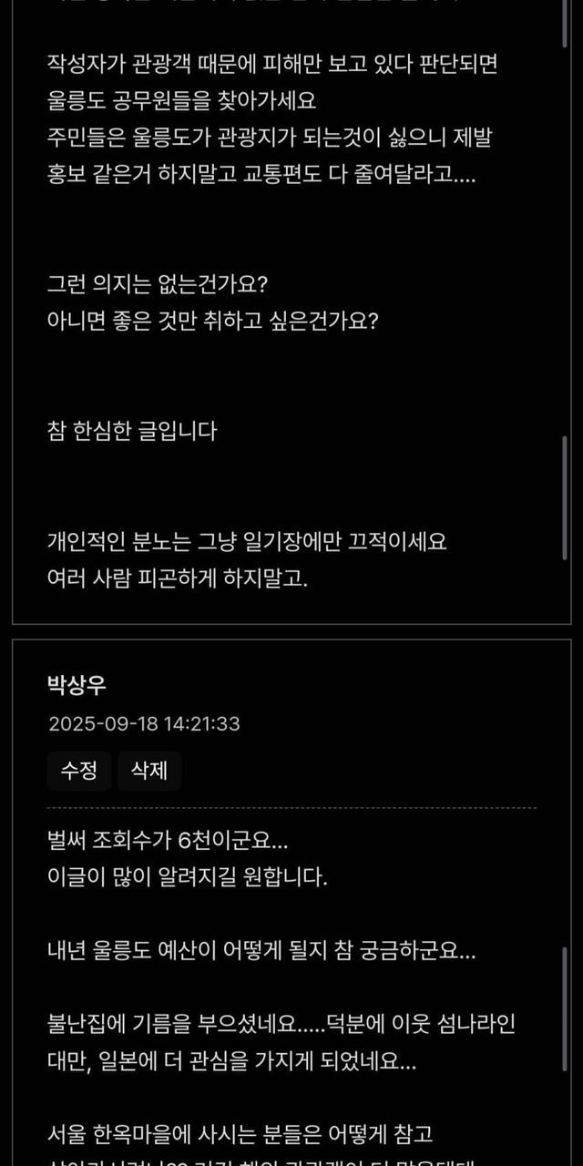 죽는 소리 하길래 울릉 군청 게시판을 가보았다