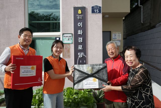 이날 봉사단은 직접 종로노인종합복지관에 모여 홍삼, 유과, 과일 등을 정성껏 포장해 선물세트를 준비했다. 또 선물세트와 화재안전키트를 종로구 내 경로당 4곳에 직접 전달했다.