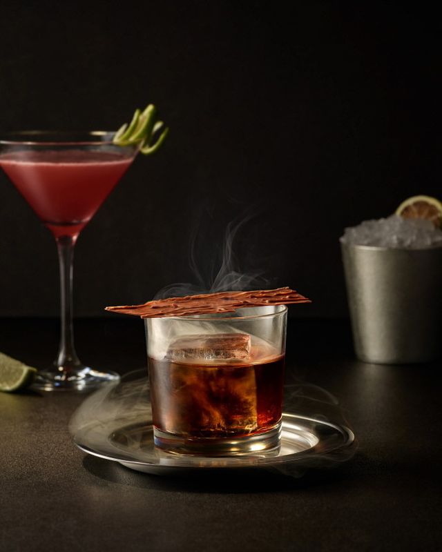 '스모키 노트'는 음악과 주류가 어우러지는 라이브러리 공간의 특징을 반영한 메뉴로, 보리를 태운 스모크 향과 위스키 베이스의 묵직한 풍미가 특징이다. 스모킹 건을 활용한 데코레이션으로 시각적, 후각적 경험을 강화했으며 달콤하고 깊은 바디감으로 긴 여운을 즐길 수 있다.
