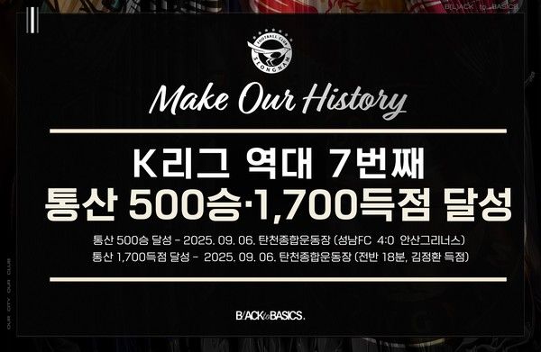 성남은 “구단의 500승과 1,700득점은 팬과 함께 만들어낸 값진 성과”라며 “앞으로도 명문 구단으로서의 전통과 책임을 다하고, 시민구단으로서 팬과 함께 호흡하는 구단이 되도록 최선을 다하겠다”라고 밝혔다.