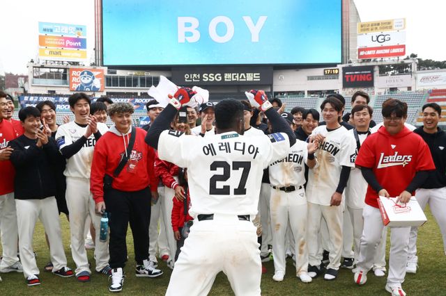 외국인 타자 기예르모 에레디아(34·SSG 랜더스)는 시즌 13번째 홈런을 때려낸 후 하늘나라로 먼저 떠난 누나를 떠올렸다. 그는 "누나가 내게 준 선물인 거 같아 더 기쁘다. 의미가 있다"라고 말했다.