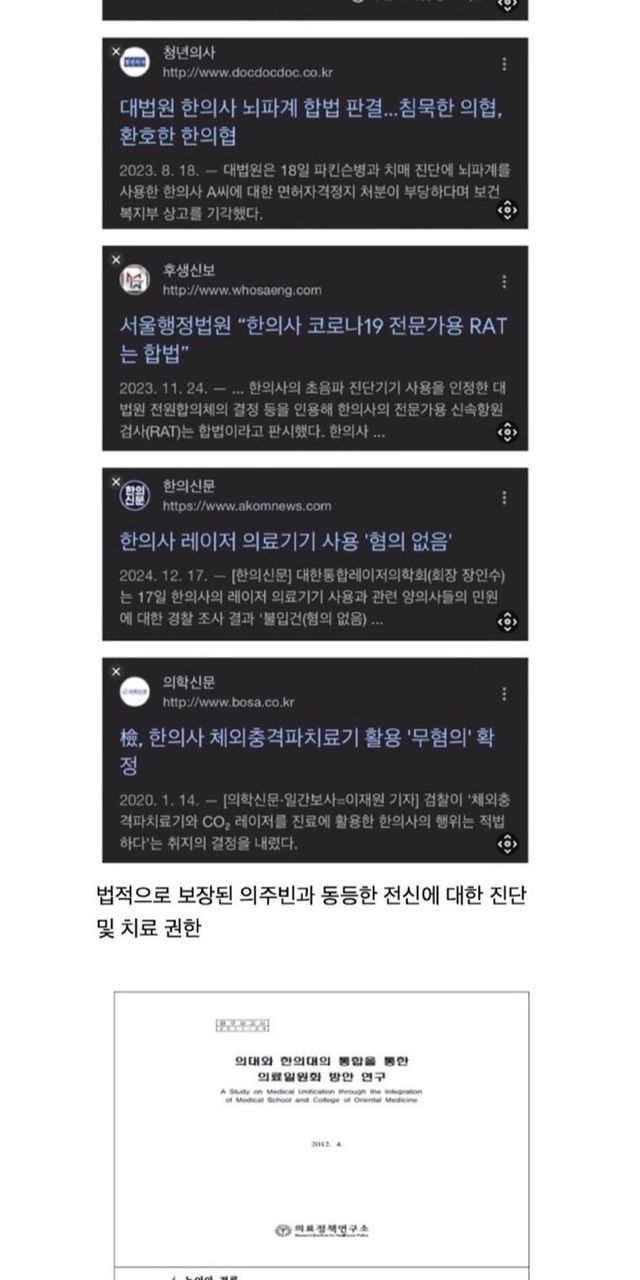 와 의잔들 폐륜짓하더니 기어이 한의사들 활용까지 국민 찬성 여론 높아졌네