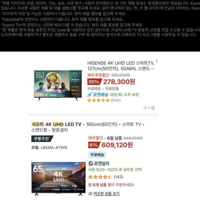 샤오미의 경우 공식 홈페이지에서 ‘본 제품은 지상파 UHD TV 방송 신호를 직접 수신할 수 없다’는 안내 멘트를 추가했다. 다만 쿠팡 등 온라인 구매처에서는 여전히 해당 안내가 없이 제품이 판매되고 있는 것으로 나타났다.
