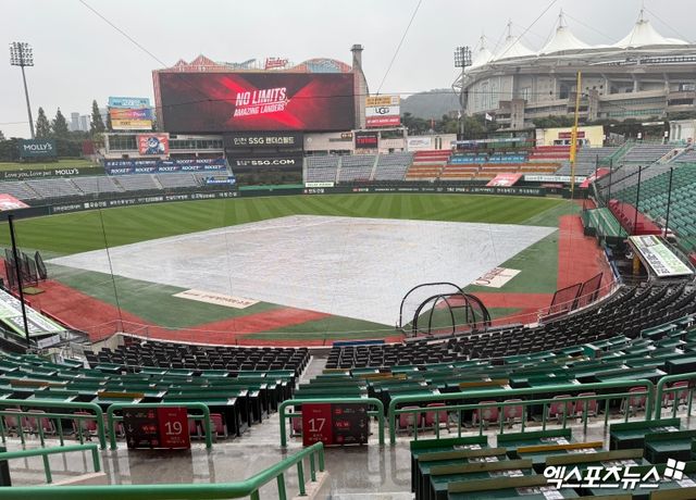 그러나 비가 변수다. 24일 전국적으로 많은 양의 비가 내리는 가운데, 인천 지역에도 하루종일 흐린 날씨가 계속되고 있다. 랜더스필드에는 대형 방수포가 깔렸지만 곳곳에 물 웅덩이가 고인 모습이 보인다.
