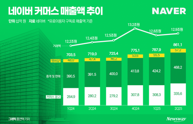플랫폼 충성도를 나타내는 지표인 멤버십 기반도 탄탄하다. 네이버는 특정 시점의 유료 멤버십 회원 수를 공개하지 않지만, 올해 2분기 유료 이용자 구독료(월 4900원) 매출액이 572억원인 점을 토대로 계산하면 약 389만명의 멤버십 회원을 보유한 것으로 나타난다. 게다가 가입자의 가족 구성원 최대 4명까지 함께 이용 가능하다는 점을 고려하면 실제 멤버십 회원 수는 더 많을 것으로 보인다.