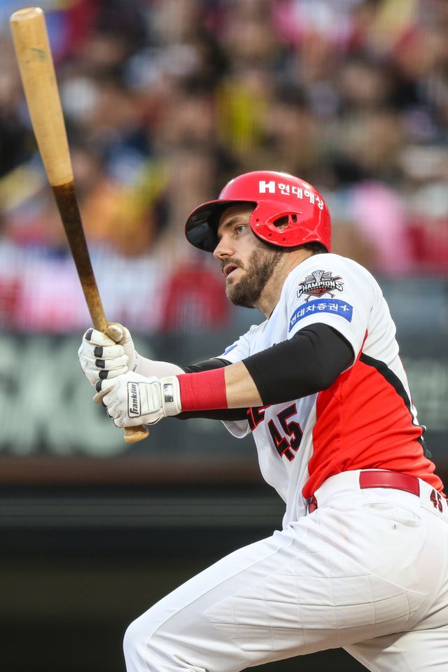 위즈덤은 지난 23일 인천 SSG 랜더스전에서 3타수 무안타에 그쳐 후반기 RC/27이 3.05에서 2.94로 더 떨어졌다. RC/27은 한 타자가 아웃카운트 27개를 모두 소화했다고 가정했을 때 발생하는 추정 득점. 해당 타자의 안타와 희생타, 도루자, 병살타 등을 종합적으로 고려해 산출한다. 지난 시즌 부문 1위는 11.20을 기록한 김도영(KIA)이었다.