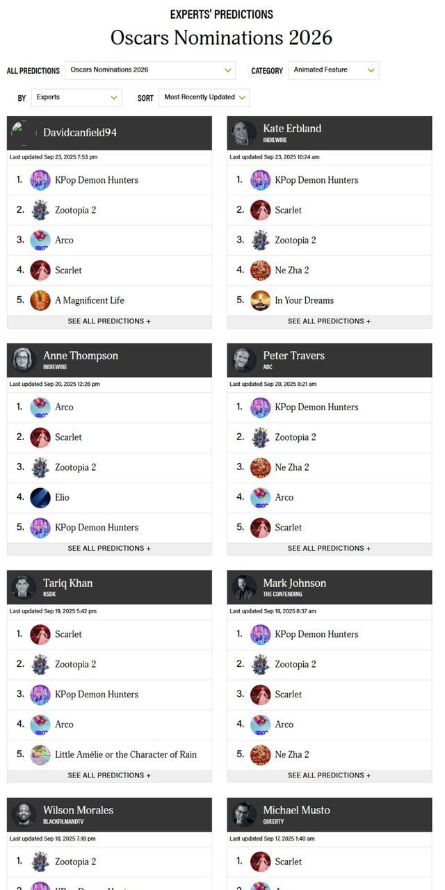 즉 65%가 아카데미 장편 애니상 수상으로 예측