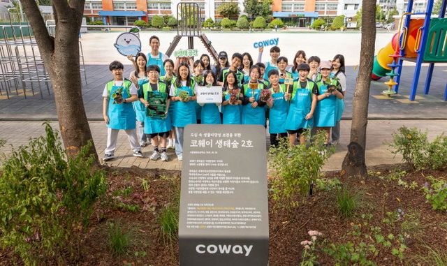코웨이 관계자는 "학생들이 매일 생활하는 공간에 생태숲을 조성된 만큼 자유롭게 자연과 교감하고 환경의 가치를 되새길 수 있기를 기대한다"며 "고객의 건강한 삶을 케어하는 기업으로서 앞으로도 친환경 ESG사업을 지속할 것"이라고 말했다.