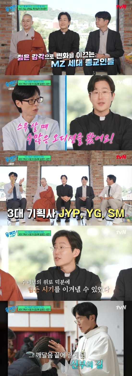 24일 방송된 tvN 예능 프로그램 '유 퀴즈 온 더 블럭'에서는 MZ 종교인 덕경 스님, 이창민 신부, 이예준 목사가 출연해 이야기를 나눴다.