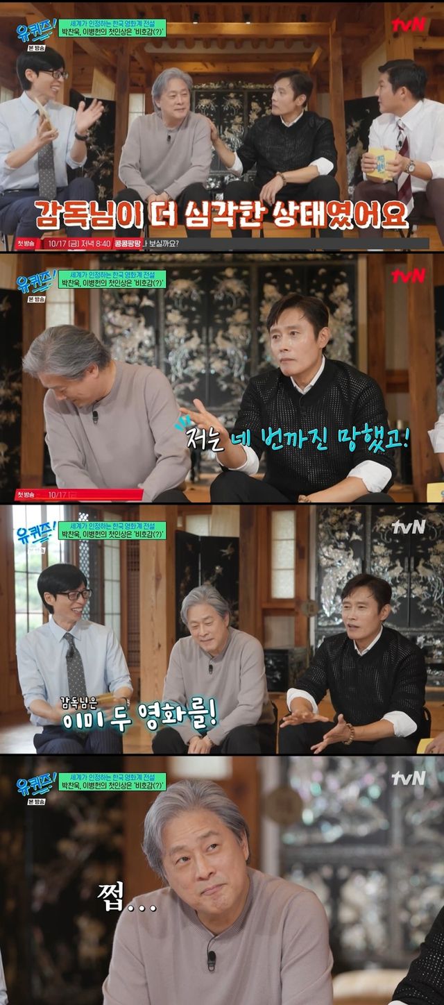 24일 방송된 tvN 예능 프로그램 ‘유 퀴즈 온 더 블럭’(이하 ‘유퀴즈’)에는 영화 ‘어쩔 수 없다’의 박찬욱 감독과 배우 이병헌이 출연해 25년 전 ‘공동경비구역 JSA’를 통해 처음 인연을 맺었던 시절을 돌아봤다.