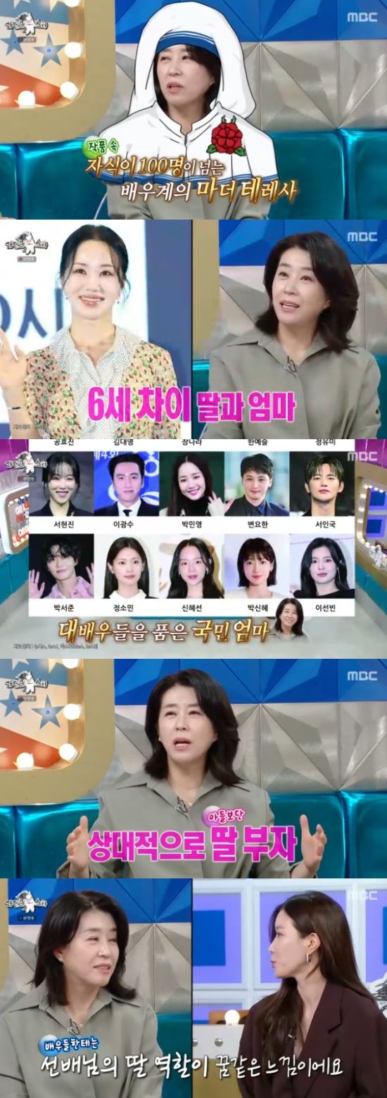 이날 '국민 엄마'로 불리는 김미경은 거의 100여 명의 배우들의 엄마 역할을 했다고 말해 놀라움을 자아냈다.