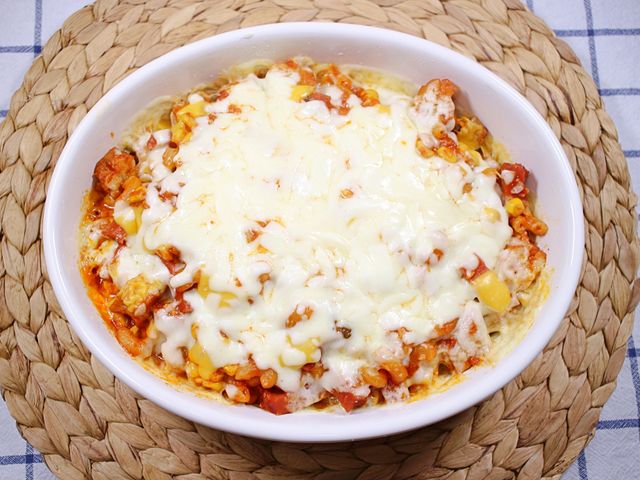 자작하게 졸아든 마카로니볶이를 전자레인지용 그릇에 옮겨 담고
