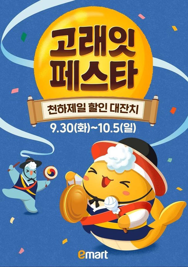 정양오 이마트 전략마케팅본부장은 "10월 고래잇 페스타는 6일간 장기로 진행해 긴 연휴 동안 분산될 쇼핑 수요를 모두 충족할 수 있다"며 "고객들의 물가 걱정을 덜기 위해 상품에 대한 확실한 가격 투자를 지속할 것"이라고말했다.