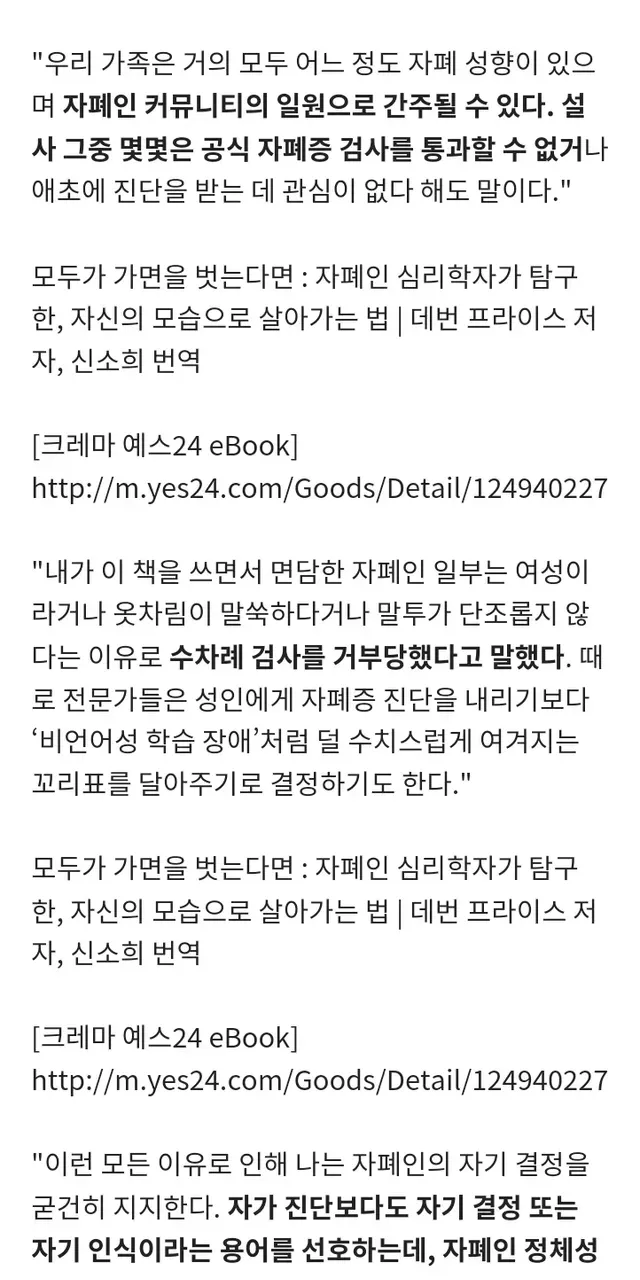 숨기지도 않고 노골적으로 자신을 아스퍼거, 자폐인이라고 자가진단하고 당당하게 선언하는 문화가 당연시 되고 있음