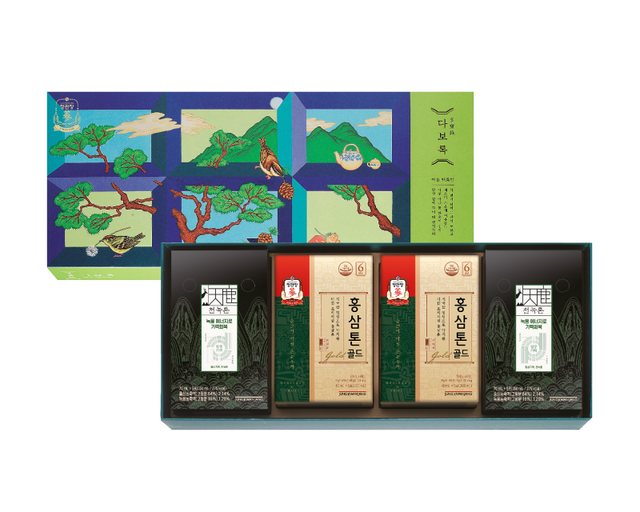 '다보록'은 건강을 기원하는 귀한 마음을 담은 정관장의 선물세트 브랜드로, 감사편, 진심편, 여 유편 등으로 구성되어 있다. 250여년 전 조선 왕실에서 진귀한 애장품과 책으로 다복(총물), 영 화(부표), 무강(#료)을 염원하였던 책가도(T2(E)를 모티브로 한 디자인으로 고급스러움을 더 했다.