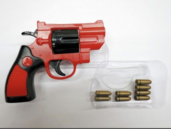 뉴시스 보도에 따르면, 문제가 된 중국산 플라스틱 장난감 권총의 이름은 '리얼 기믹 미니 리볼버'로, 대상 연령은 12세 이상으로 표기되어 있으며 약 12㎝ 길이다. 플라스틱 탄환 8발을 담을 수 있는 탄창과 총신이 뚫려 있어 실탄을 발사할 수 있는 구조다.