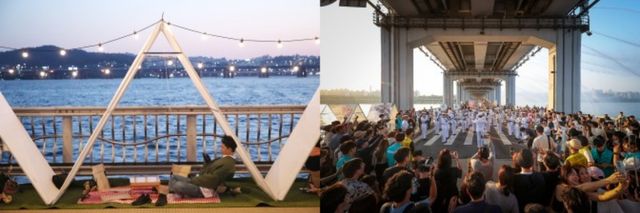 잠수교는 원래 강남과 강북을 잇는 도심 교통로지만 축제 때면 전혀 다른 얼굴을 드러낸다. 자동차 대신 시민과 관광객이 가득 메우고, 사람들은 한강 바람을 맞으며 다리를 걸으며 웃고 떠든다. 길 양옆에는 먹음직스러운 푸드트럭이 줄지어 서 있고, 무대에서는 기타 선율과 젊은 예술가들의 노래가 흘러나온다. 차가 다닐 때는 그저 스쳐 지나가던 다리가, 걷기 위해 일부러 찾아오는 공간으로 변하는 순간이다.