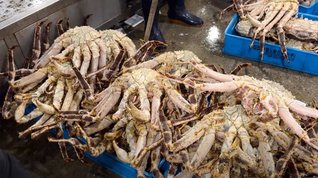 반면 대게는 여전히 높은 가격을 유지하고 있다. 마가단대게(러시아 마가단 지역에서 조업한 대게)는 kg당 5만원 초반대, 소매점에서는 5만원 후반대에 판매되고 있다. 다리가 하나 없는 대게도 kg당 4만7000원 정도에 거래되고 있다. 유튜버는 "대게가 kg당 5만7000원에서 6만원 정도라면 킹크랩을 드시는 게 낫다. 개인적으로 지금은 킹크랩 드실 때라고 생각된다"라고 말했다.