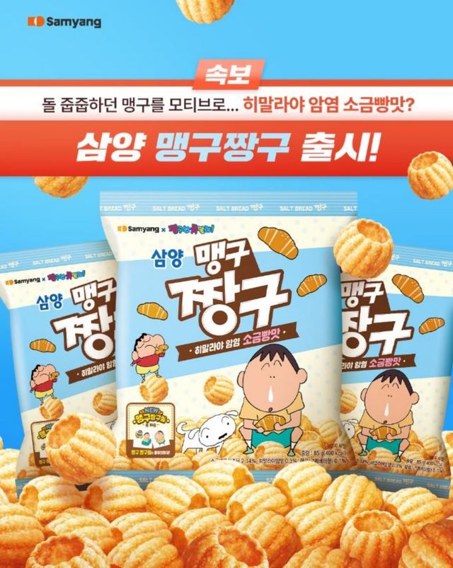 삼양식품은 인기 애니메이션 ‘짱구는 못말려’와 협업한 과자 시리즈의 세 번째 제품 ‘맹구짱구’를 출시했다고 25일 밝혔다. 앞서 선보인 ‘짱구’와 ‘흰둥이짱구’에 이은 신제품으로 이번에는 짱구의 단짝 친구인 ‘맹구’를 전면에 내세워 새로운 재미를 선사한다.