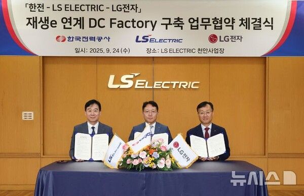뉴시스 보도에 따르면, 한전은 지난 24일 LS 일렉트릭 천안사업장에서 '재생에너지 연계 DC Factory 구축'을 위한 업무협약(MOU)을 체결했다.
