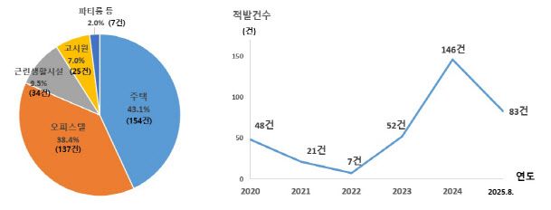 서울특별시는 2020년 1월부터 지난 8월까지 약 5년간 불법 숙박업소 357곳이 적발됐다고 25일 밝혔다. 이 중 98.3%(351건)는 온라인 중개플랫폼에 게시된 업소였고, 유형은 주택과 오피스텔이 대부분을 차지했다.