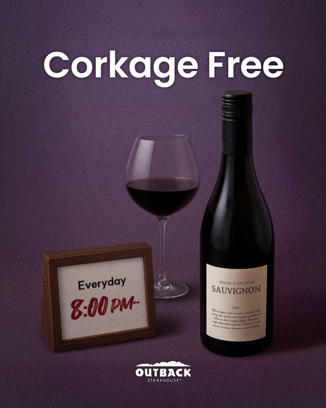 이번 서비스는 매장 와인 구매 여부와 상관없이 저녁 8시 이후 방문하는 모든 고객에게 적용된다. 고객은 매장에서 판매하는 와인은 물론, 직접 준비한 와인도 아웃백의 다양한 메뉴와 함께 부담 없이 즐길 수 있어 보다 자유롭고 만족스러운 다이닝 경험을 누릴 수 있다.