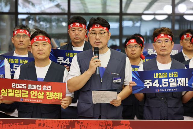 25일 금융권에 따르면 금융노조는 26일 총파업을 진행한다. 노조는 올해 사측과 산별중앙교섭에서 임금 인상과 주 4.5일제 도입 등을 요구했으나 사측은 이를 수용할 수 없다고 맞서고 있다. 김 위원장은 24일 총파업 기자회견에서 “노조가 원만한 타결을 위해 임금 인상률을 3.9%로 수정 제안했음에도 사측은 여전히 실질임금 삭감 수준인 2.4%를 고수하고 있다”며 “금융산업은 역대급 당기순이익을 기록하고 있는데 노동자에게 돌아온 몫은 초라하다”고 말했다.